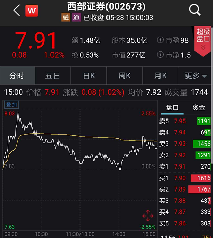二級市場上,西部證券28日上漲1.02%,收報7.91元。