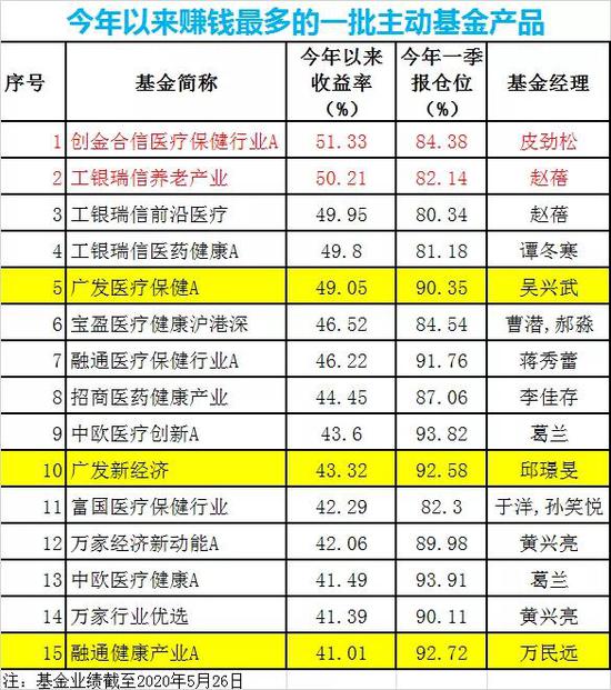 數(shù)據(jù)顯示,截至5月26日,創(chuàng)金合信醫(yī)療保健行業(yè)A收益率51.33%,暫居主動(dòng)權(quán)益類基金業(yè)績(jī)榜首,工銀瑞信養(yǎng)老產(chǎn)業(yè)同期斬獲50.21%的收益率,兩只基金年內(nèi)凈值漲幅紛紛突破50%。